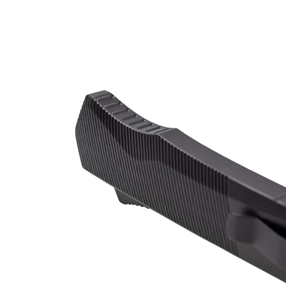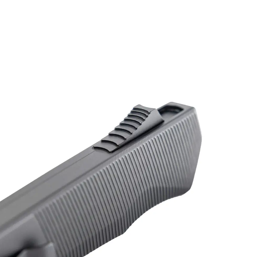 Moreover, the Tekto A5 Spry has an ambidextrous, precision-contoured 6061-T6 aluminum handle that sits with the blade. The handle features a textured surface for a comfortable and secure grip especially under wet conditions. This is an OTF (out-the-front) knife designed to look and function differently than a standard flipper or butterfly knife.
