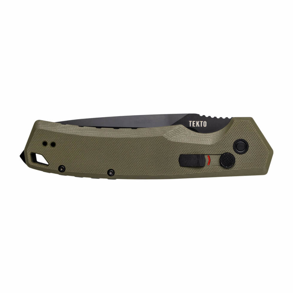 Sold by the awesome folks at Tekto Knives, this is a folding automatic model designed for superior performance and durability. The fact that this bad boy also exudes a sleek aesthetic is a huge plus in our book. Take your pick from four colorways: Forged Carbon, Black G10, OD Green G10, and Desert G10.