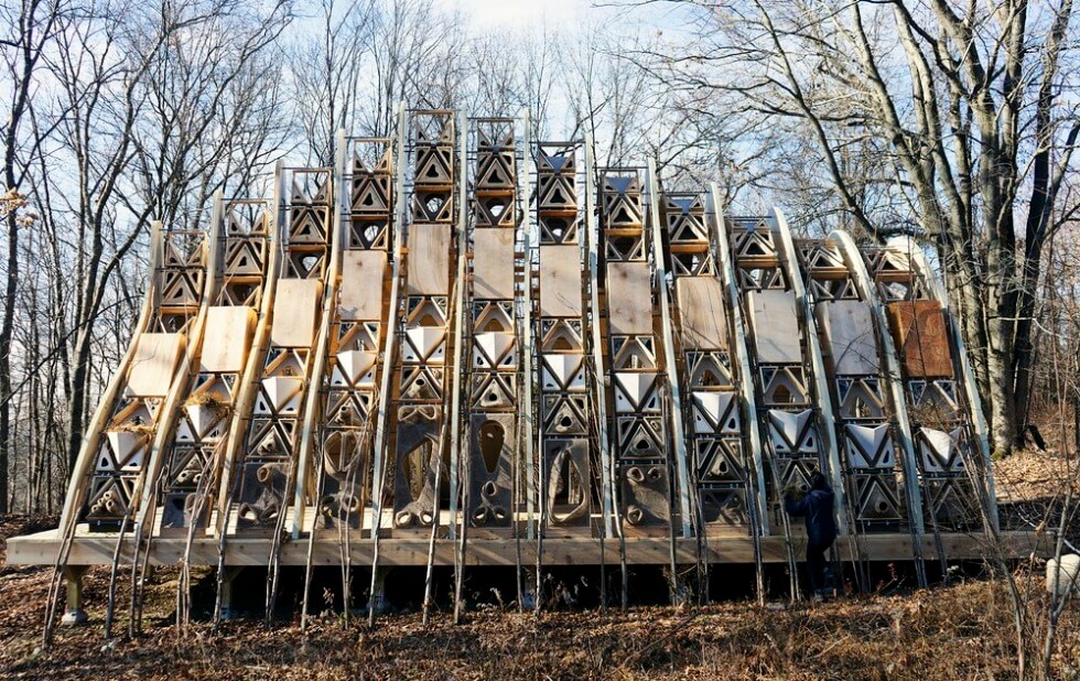 Terreform ONE has constructed Fab Tree Hab, a 1000 sq. ft. terrestrial reef and grafted living tree structure located in New Windsor, New York, near Storm King Art Center. It’s a multispecies habitat that serves as an observatory and education center for people and as a wildlife refuge.