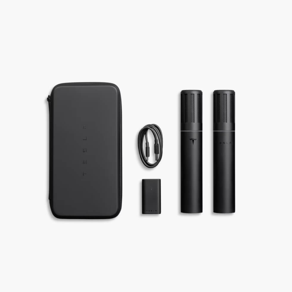 Tesla is only offering the CaraokeMic in the United States mainland as of this writing. Unfortunately, it only comes in black with subtle branding on the housing. To ensure optimal audio quality, the microphones use an anti-howling system to filter unwanted noise during your sessions.