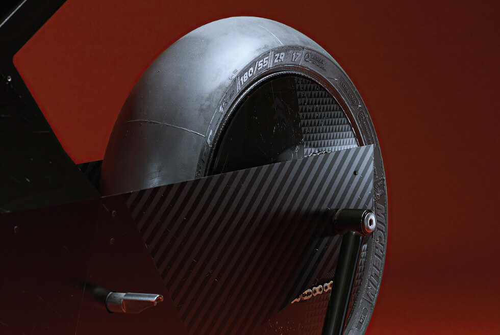 From what we can gather from the images, the matte black polygonal fairings of THE SOKUDO could be a mix of carbon fiber and aluminum. A custom swingarm and inverted fork sit on carbon fiber wheels with massive brake discs that peek out. However, the absence of a traditional seat might make the ride a bit uncomfortable for long trips.