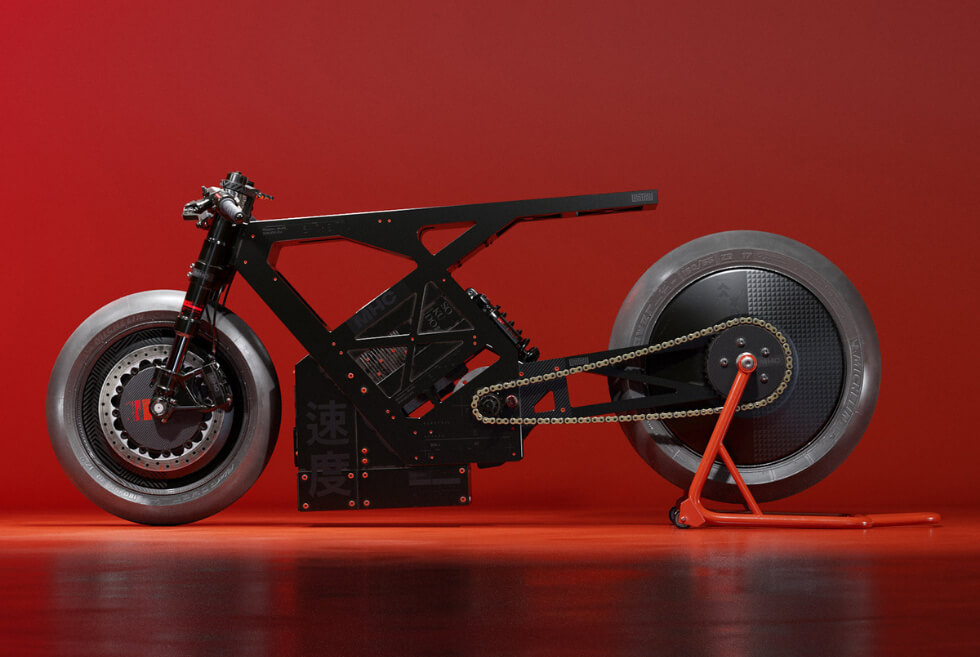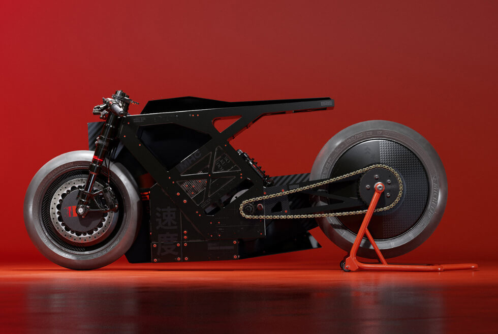 THE SOKUDO is one of many digital renders created by the San Diego-based concept artist and Carlos “colorsponge” Pecino. It is part of their M.H.C. Collection. At this point, technical specifications are unavailable, but the frame should house a high-capacity battery and a powerful electric motor.