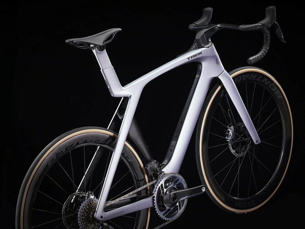 “Seven generations in the making, it’s the fastest road race bike we’ve ever made, pushing the boundaries of what’s possible with never-before-seen IsoFlow technology, our best and lightest carbon, and unprecedented aerodynamics,” Trek says about the Madone SLR.