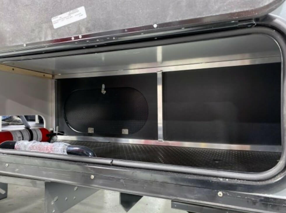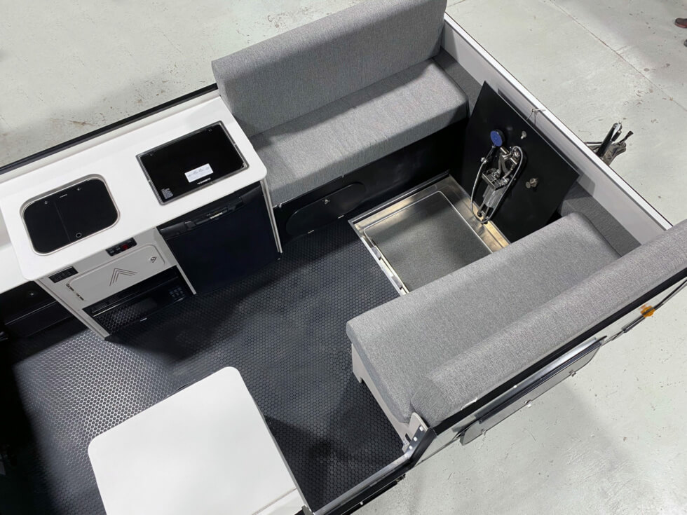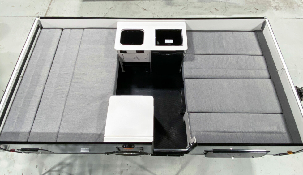 Likewise, this camper can withstand harsh weather conditions and off-road use. Its interior comes with a high-strength, durable aluminum tube framework throughout. Meanwhile, commercial grade, raised coin 100% Polyvinyl flooring provides waterproof protection and excellent traction and slip resistance.