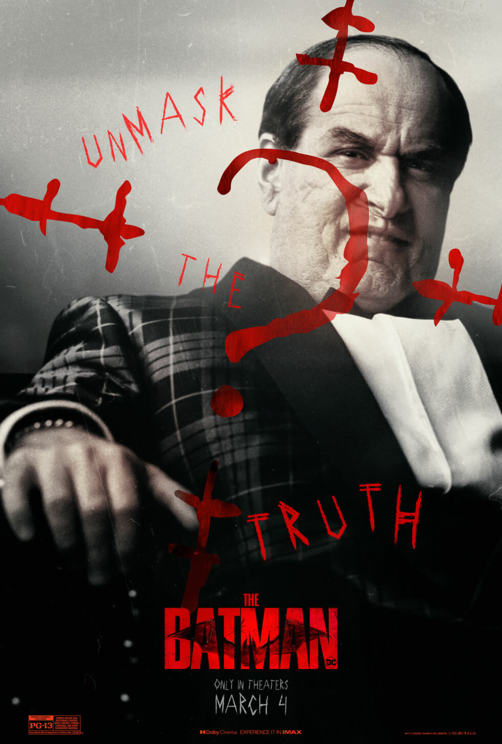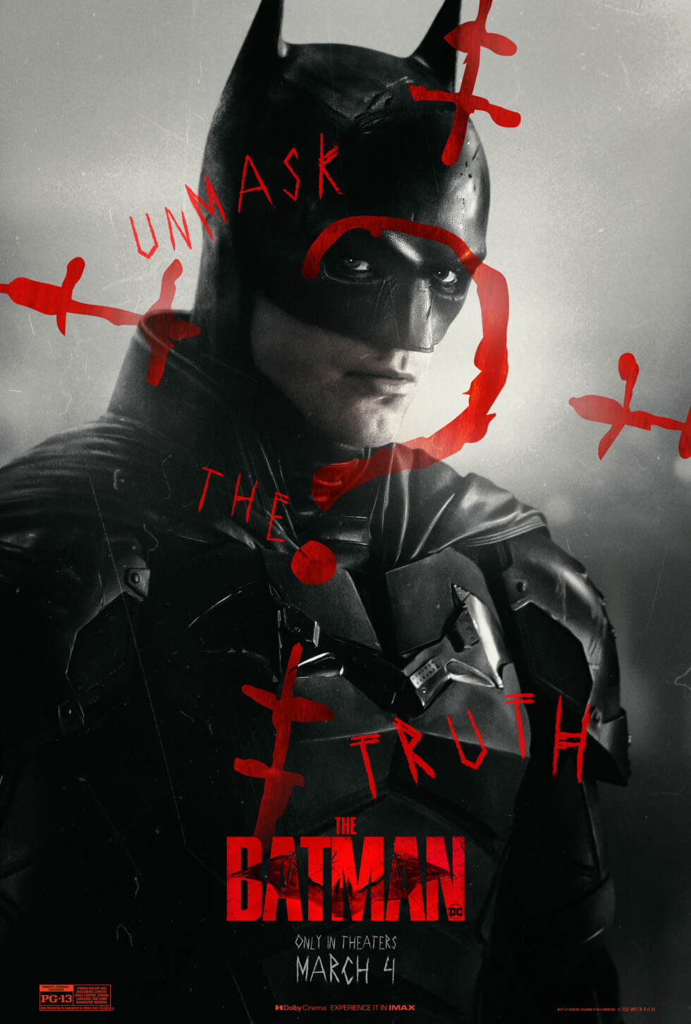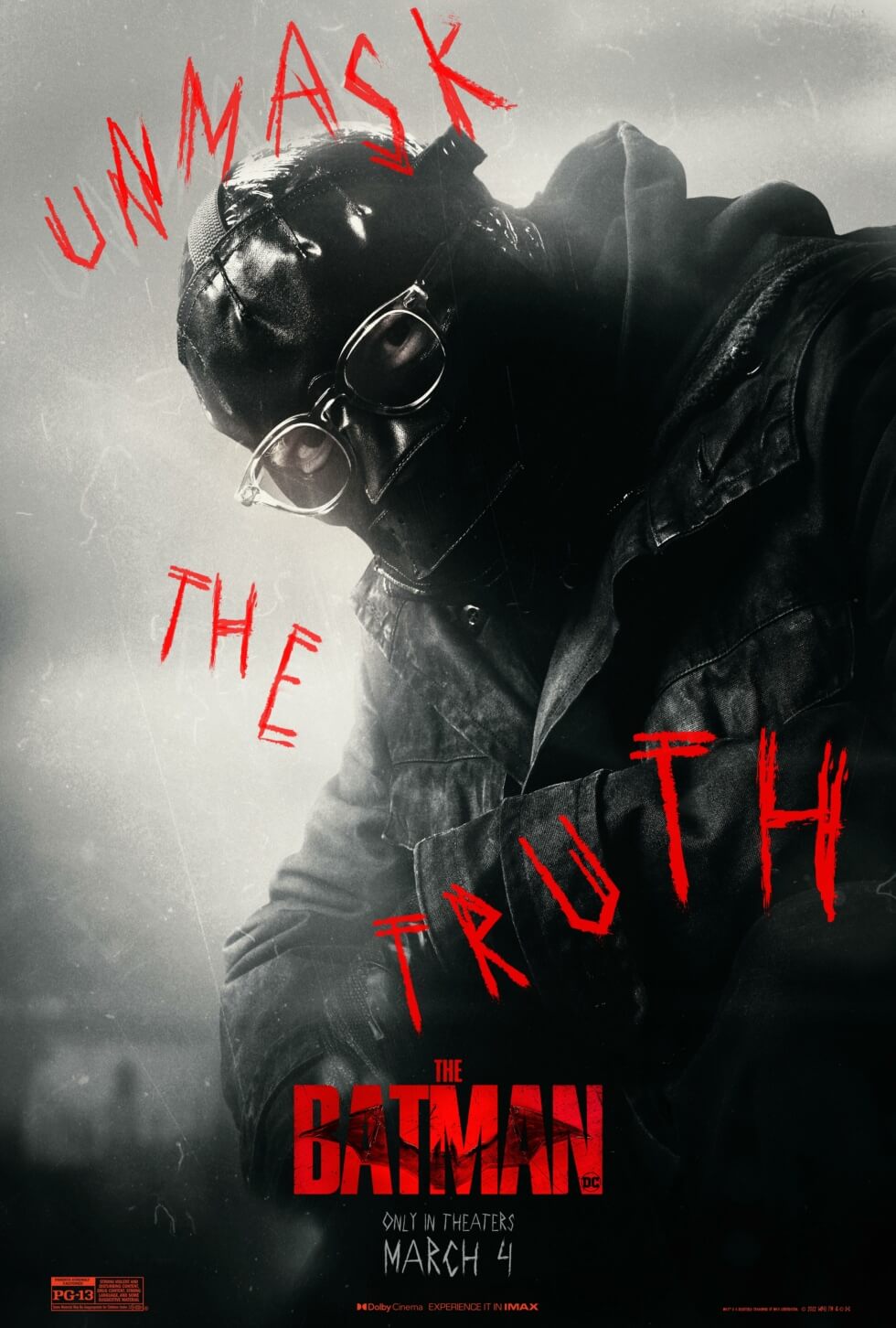 The official posters showcase the main characters in the gritty film. These include Robert Pattinson’s titular character, Catwoman, The Riddler, and Penguin. Each image features the phrase “unmask the truth” along with The Riddler’s iconic question mark.
