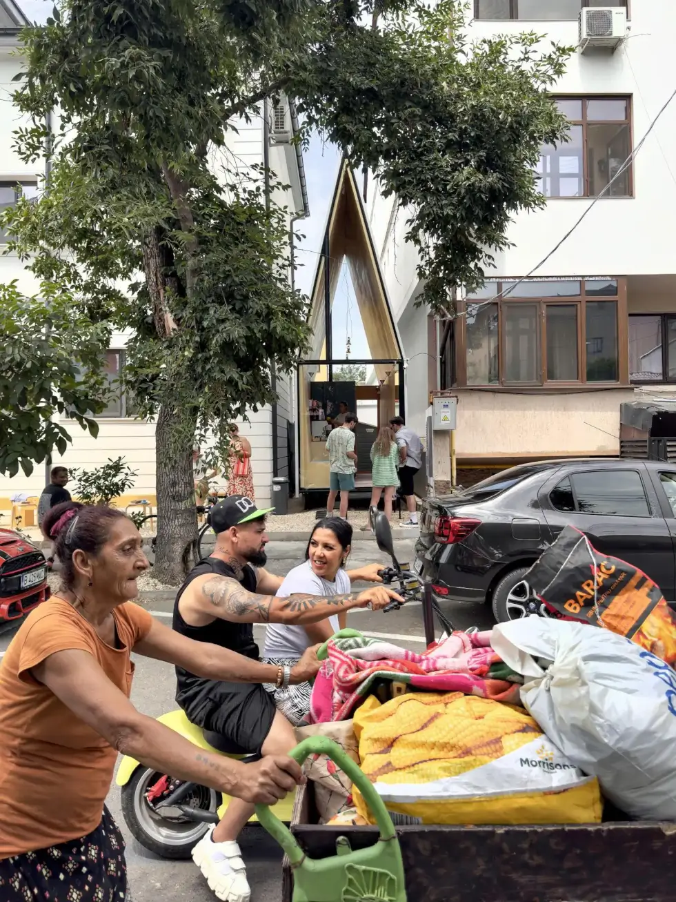 Wedged between existing buildings in Bucharest’s Bazilescu Street is a geometric structure from local practice Vinklu. The team transformed this sliver into its newest Boiler-Coffee locations called The Chapel, designed by Ștefan Păvaluță.
