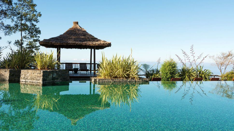 Located on Madeira Island in Potugal, the Choupana Hills Resort & Spa overlooks the port-town of Funchal from its snug spot on a hill. It is surrounded by subtropical gardens and affords sweeping views of the Atlantic Ocean, giving its guests the feeling that they are on top of the world.