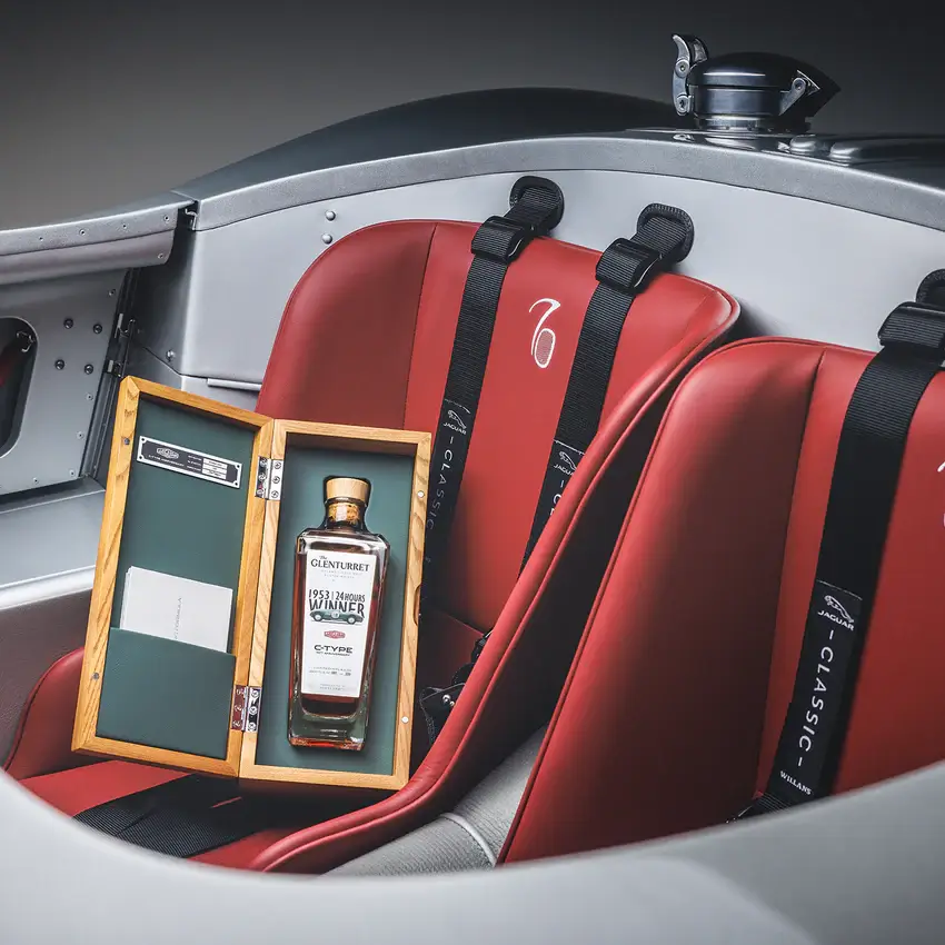 However, The Glenturret x Jaguar venture appears to be in reverence of a legendary machine in the world of motorsport. As the name tells us, the Jaguar C-Type is considered one of the most sought-after sports cars. Original examples in working order can fetch insane prices at auctions. Perhaps the same could be said about these exclusive bottles of the finest single-malt Scotch whiskey.