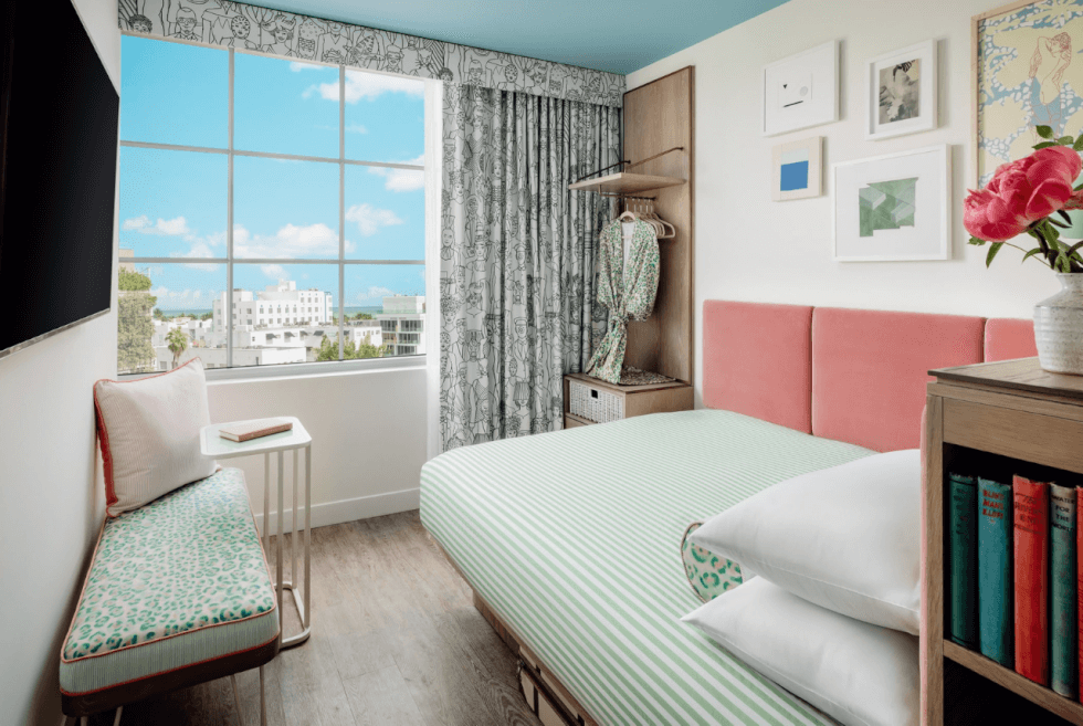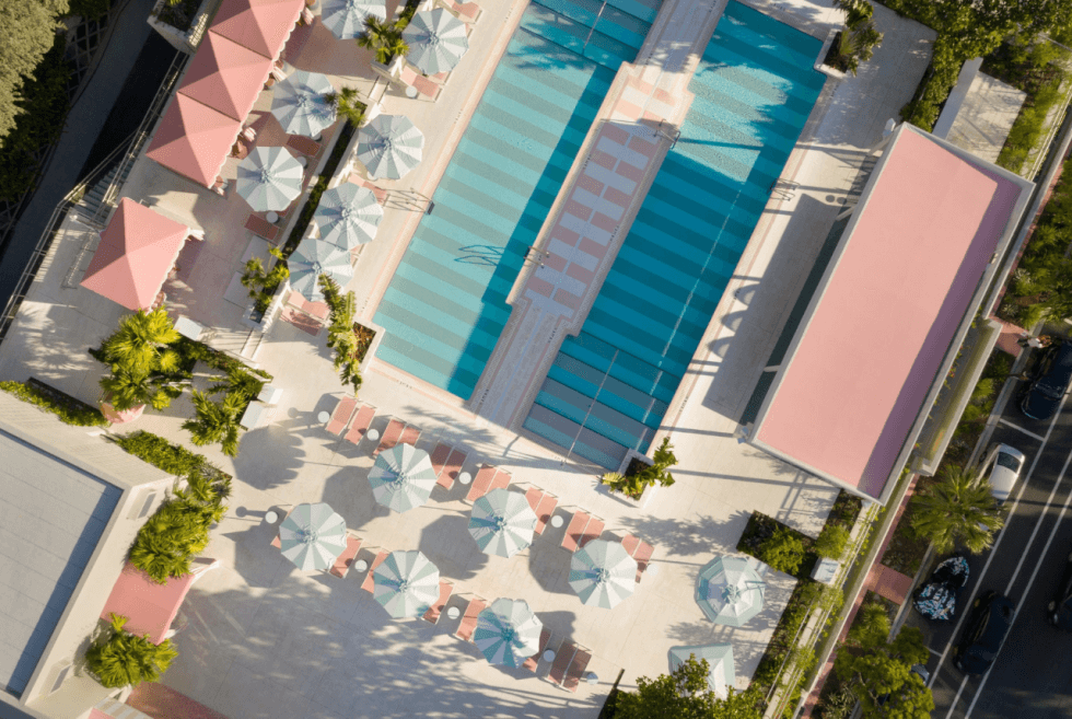The Goodtime Hotel “is a collection of experiences linked by a commitment to create emotional good,” as the official website calls it. Other notable amenities include the library, the café, the Strawberry Moon restaurant, and the pools. Guests can enjoy the outdoor jungle gym, fitness center, and shop at the ground floor retail area.