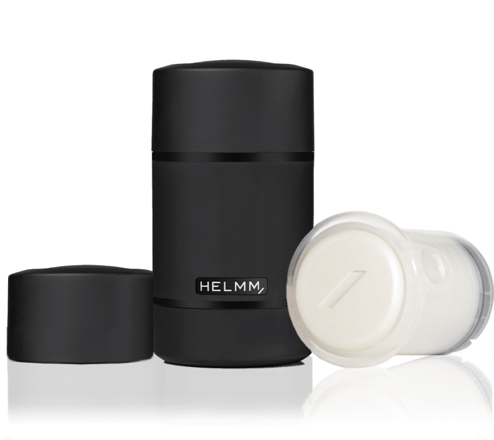 Best of all, the Helmm Refillable Deodorant Compass Vessel is adventure-ready. It is coated in rubber for durability, is lightweight, compact to fit inside your Dopp kit, and travel-friendly.