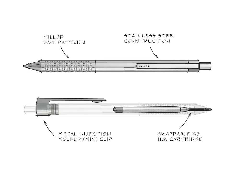 The metal-injection-molded (MIM) clip provides positive retention while ensuring easy deployment every time. When it comes to click pens, a smooth clicker is a must. The Burwell provides buttery smooth action for one-handed operation in all situations. It also uses replaceable Parker-style G2 refills so you can customize this pen with your own choice of ink color, nib, and type. You can also choose this pen in a raw stainless steel finish or in a matte black PVD finish.