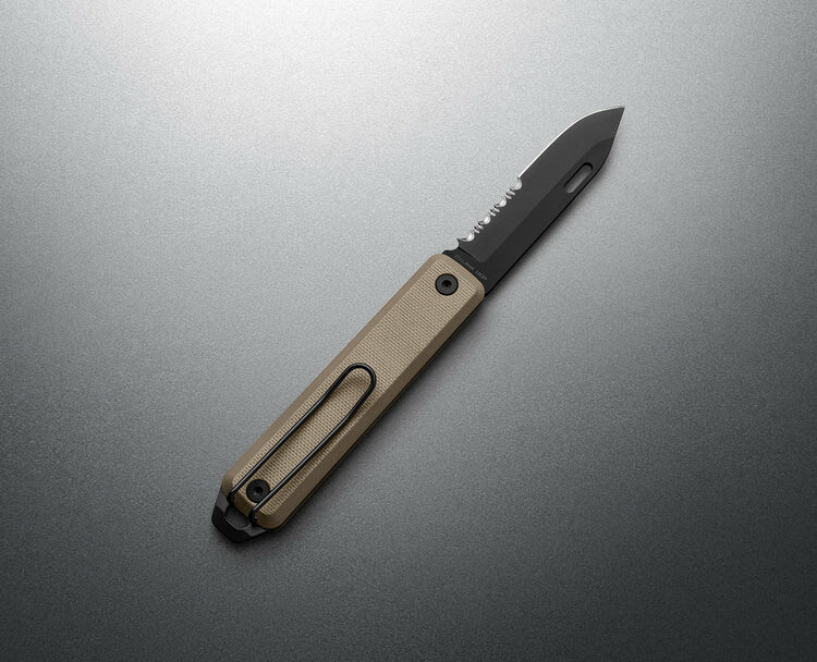Moreover, the handle is available in two options in terms of material. It comes in either aluminum or G-10 scales, which can either be black or tan. Meanwhile, the aluminum handle is currently only available in a bright yellow colorway.