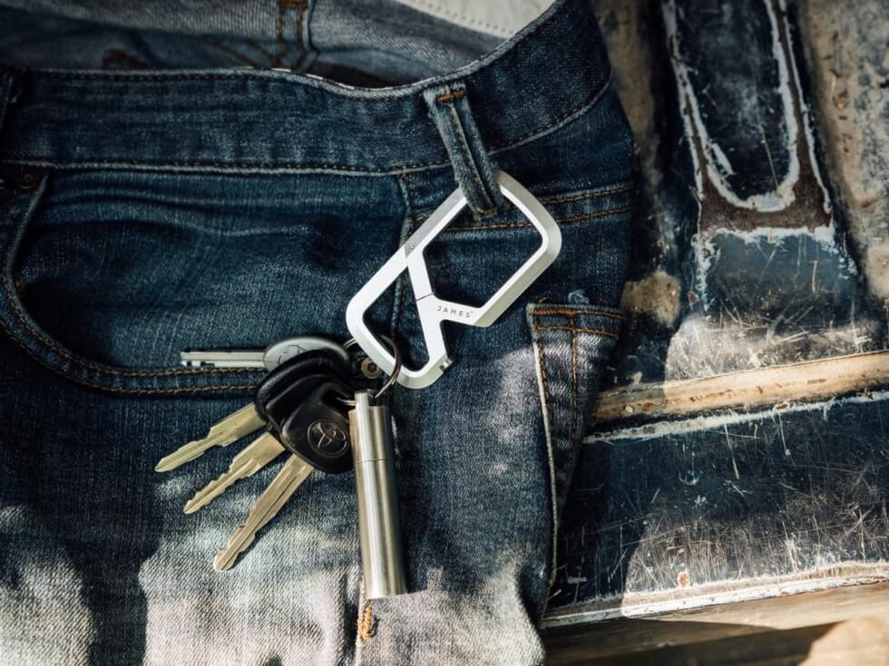 The James Brand Mehlville Carabiner is thin at just 1/4 inch with a height of 3 1/8 inches and a width of 1 5/8 inches. You can barely feel its heft which is essential when you use it to carry a bunch of keys. The James Brand Mehlville Carabiner comes in two colours: silver and black.