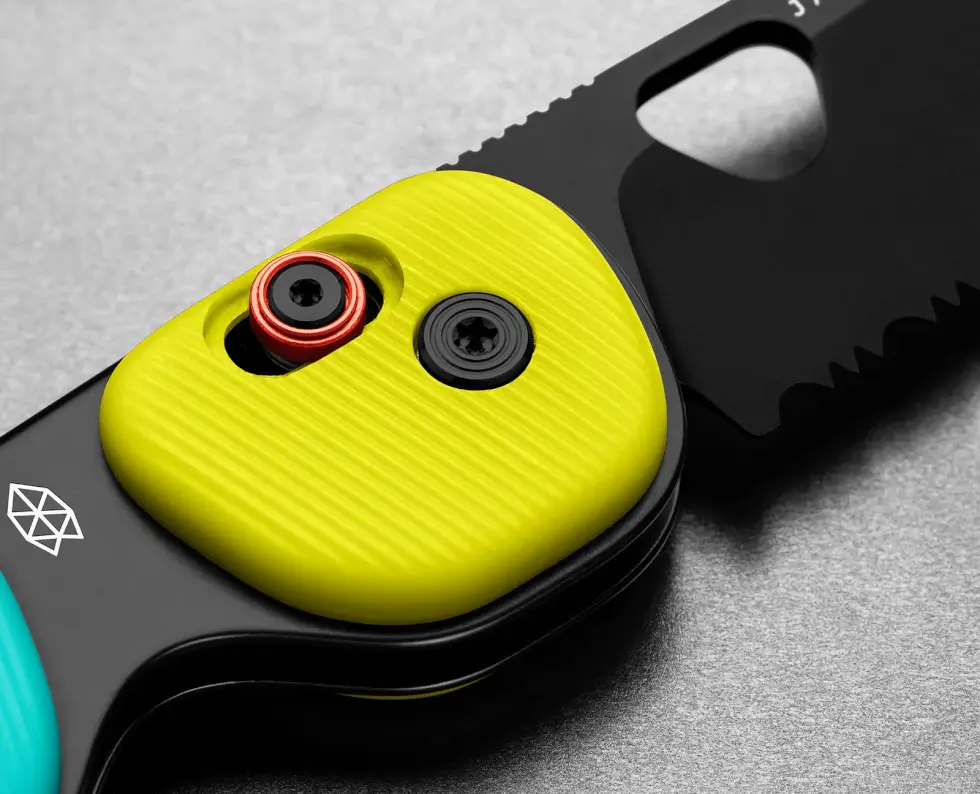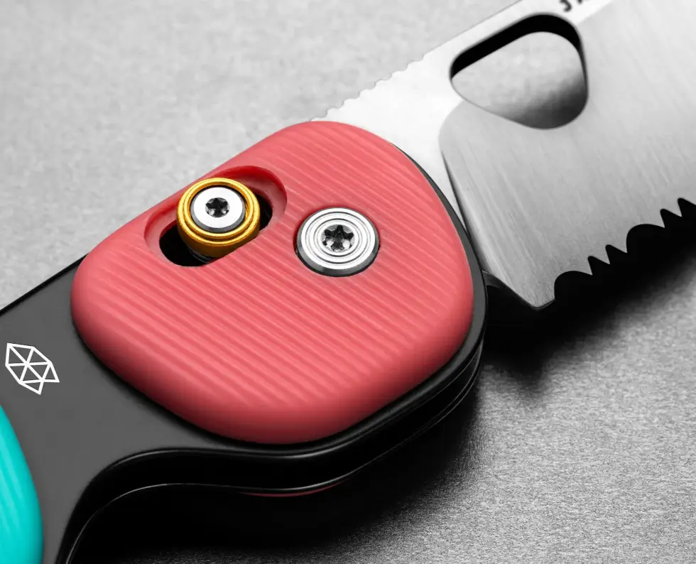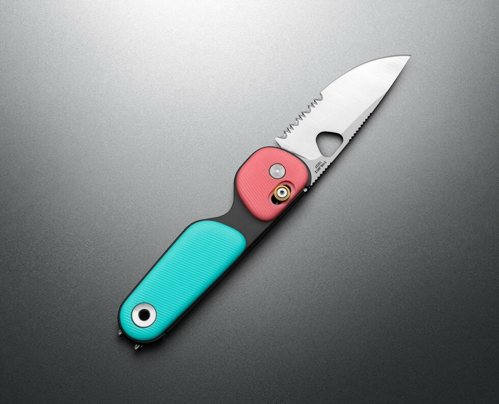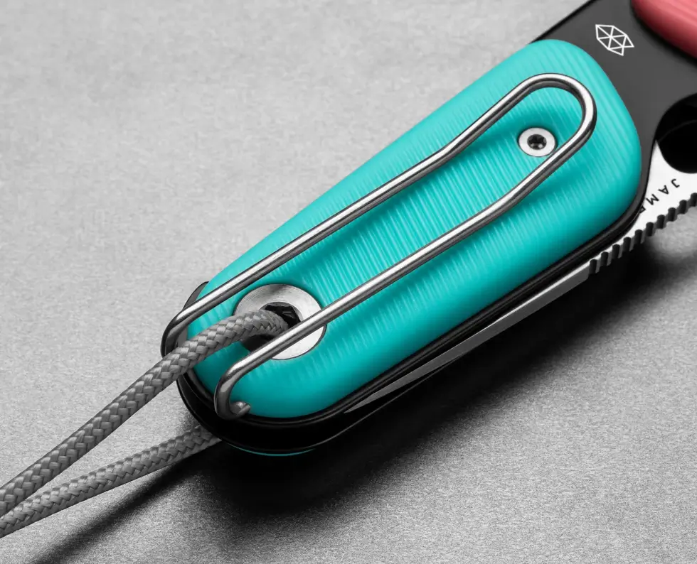 As one of the respected manufacturers of EDC and lifestyle products, these two tout exceptional build quality and stylish design. Starting with the folder, we’re looking at something resembling a toy at first glance. It’s likely due to the flashy colorways available for it. Buyers can get it in either Turquoise/Neon or Turquoise/Coral.