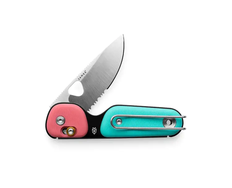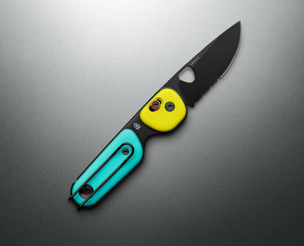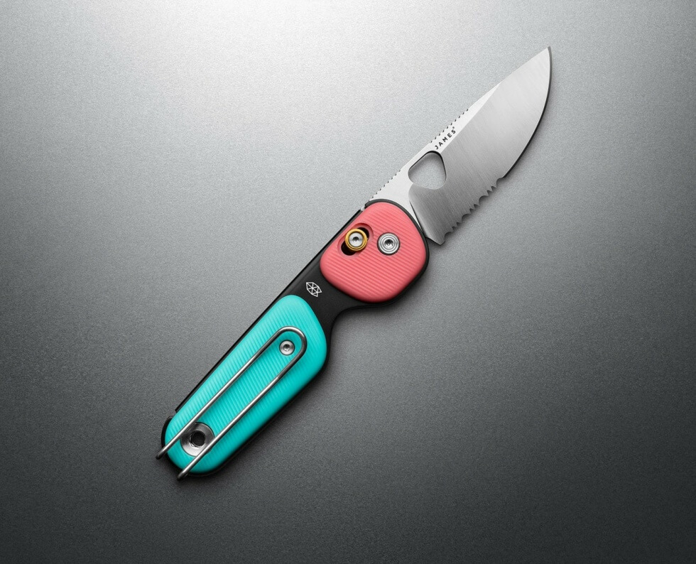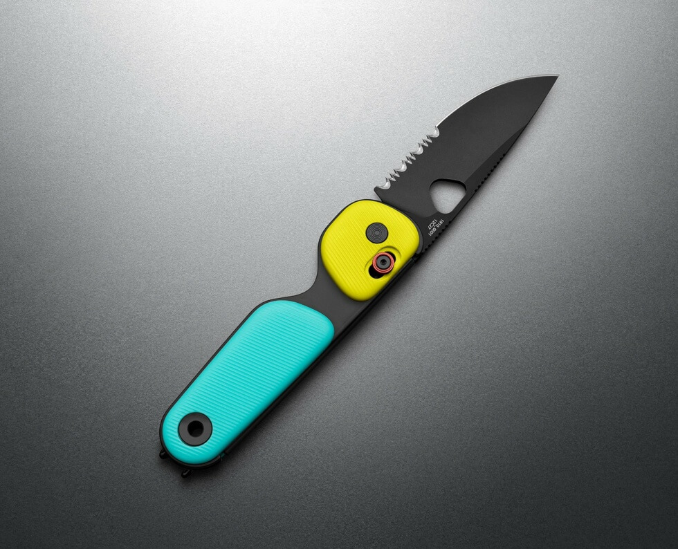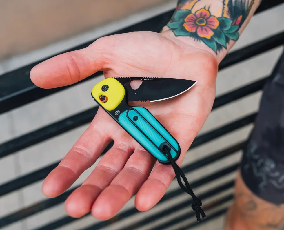 As one of the respected manufacturers of EDC and lifestyle products, these two tout exceptional build quality and stylish design. Starting with the folder, we’re looking at something resembling a toy at first glance. It’s likely due to the flashy colorways available for it. Buyers can get it in either Turquoise/Neon or Turquoise/Coral.