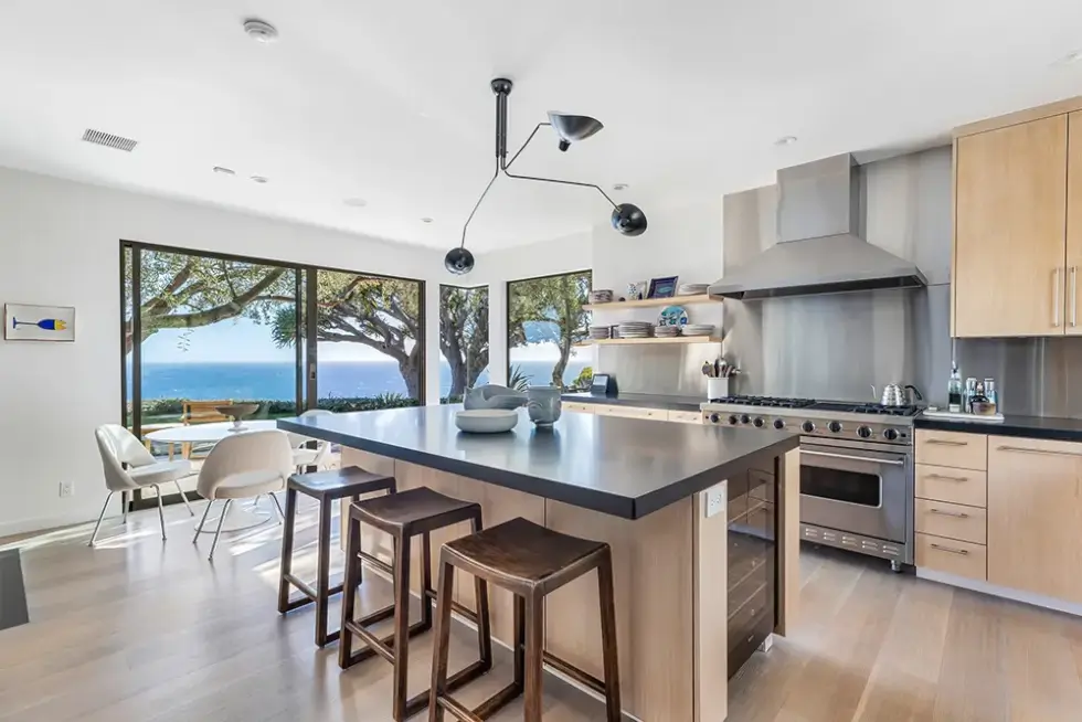 These include an outdoor BBQ, custom firepit, and outdoor shower. Other features of this Malibu home include a primary suite with cozy fireplace and ocean views and a spa-style bathroom adorned with custom built-ins and walk-in closet. This property has a 2-car garage plus second gated entrance for guests or services. It also comes with membership rights to the coveted La Costa Beach and Tennis Club.