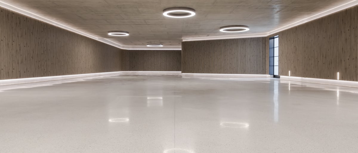 Partnered with the walls are 12mm concrete overlays instead of typical large format tiles, resulting in more regal and elegant look that’s simultaneously low-maintenance and durable. Just the qualities you need to describe the perfect garage.