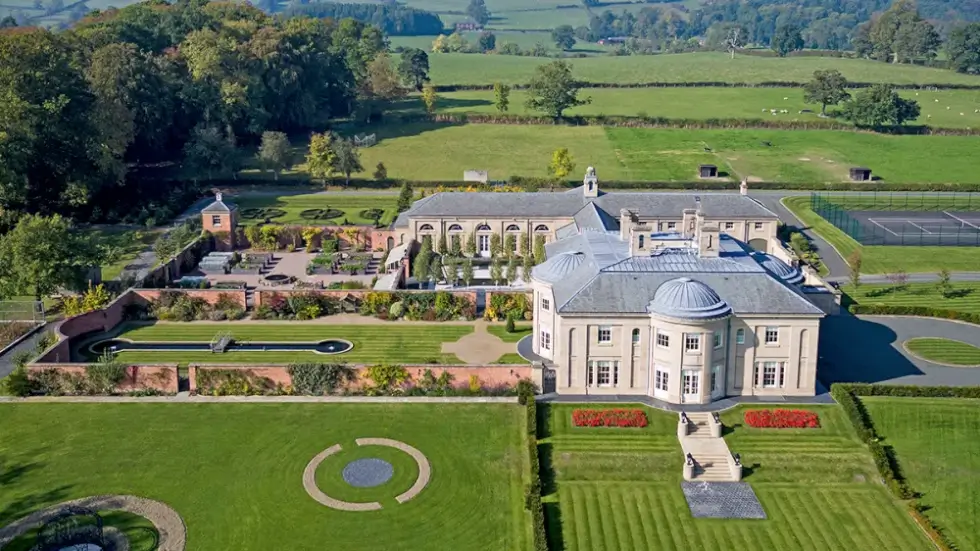 A roughly 20-year-old estate located in the U.K. countryside formerly owned by the late 6th Baron of Harlech, Francis Ormsby-Gore, is on the market for a whopping £12.5 million or about $15.8 million. The property, called The Mount, sits on a sprawling 47 acres in Oswestry, Shropshire discreetly tucked behind double gates and positioned atop a sweeping drive.