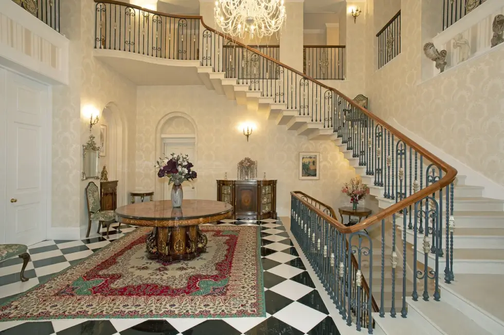 The Mount opens to a main reception hall adorned with a cantilevered staircase and it leads to a drawing room and a formal dining room. It offers a variety of modern luxuries including an elevator inside a spacious 31,000 square feet home designed with the help of Shrewsbury-based conservation experts and architects Andrew Arrol and James Wade of Arrol and Partners.