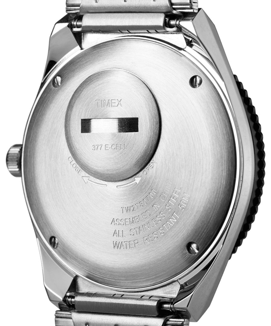 Users can quickly replace the battery through a special hatch on the case back. It’s a small element of convenience that many users will surely appreciate. Meanwhile, the dial is available in a trio of choices: blue, white, and black. The Q Timex Reissue uses a stainless-steel band and clasp, which stays true to the original’s aesthetic.