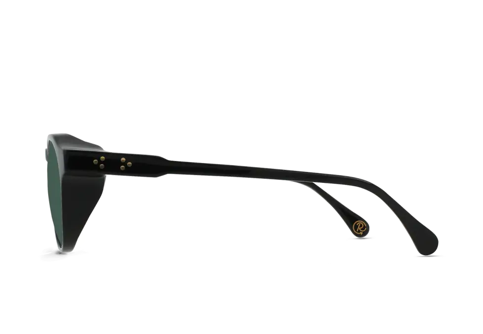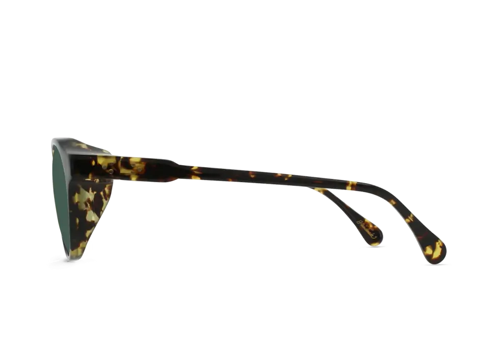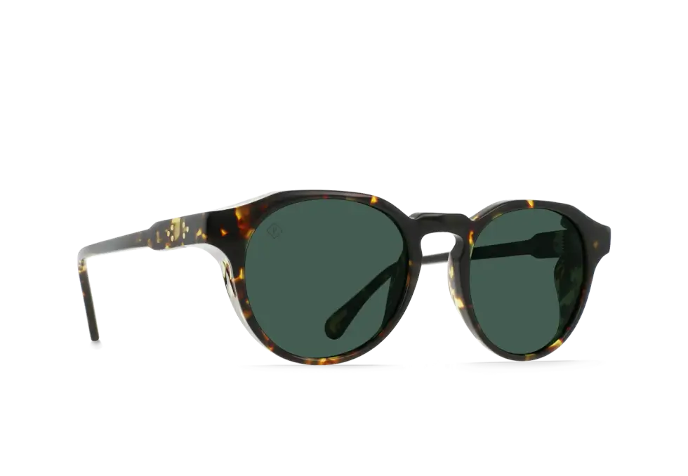 The Expedition Remmy arrives in either Recycled Black and Shasta Tortoise acetate temples. Both feature an acetate front with a 10mm + 10mm lamination and gold metal accent. The frames have also been fitted with “Expedition” Green Polarized lenses.