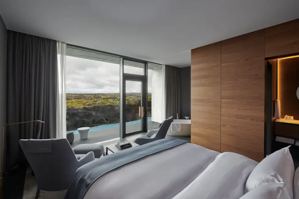 The Retreat is a one-of-a-kind luxury resort that places you in close proximity to Iceland’s famous Blue Lagoon. It features 60 suites, a Michelin-starred restaurant, and unique wellness services. About 20 minutes away from Keflavik Airport, it will also take you about 40 minutes to travel from the hospitality establishment to Reykjavík.