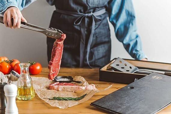 Moreover, the brush, fork, and spatula come with leather hang straps and the tongs are self-locking for easy storage. The set comes with its own wooden storage block. The wood used in this box only incorporates quality wood from Germany that is FSC-certified from sustainable sources that are good for both the durability of the knives and the planet.