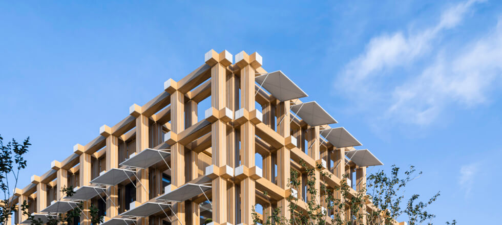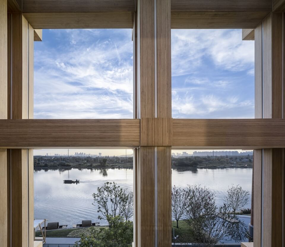 Still, they were able to apply the concept at the end. The exterior of the building is clad in recycled bamboo. The wooden planks give the Shaoxing Rice Wine Town Reception Room a warm and welcoming façade. Since the spaces are divided into cubes, it’s easier to adapt to what the project calls for.