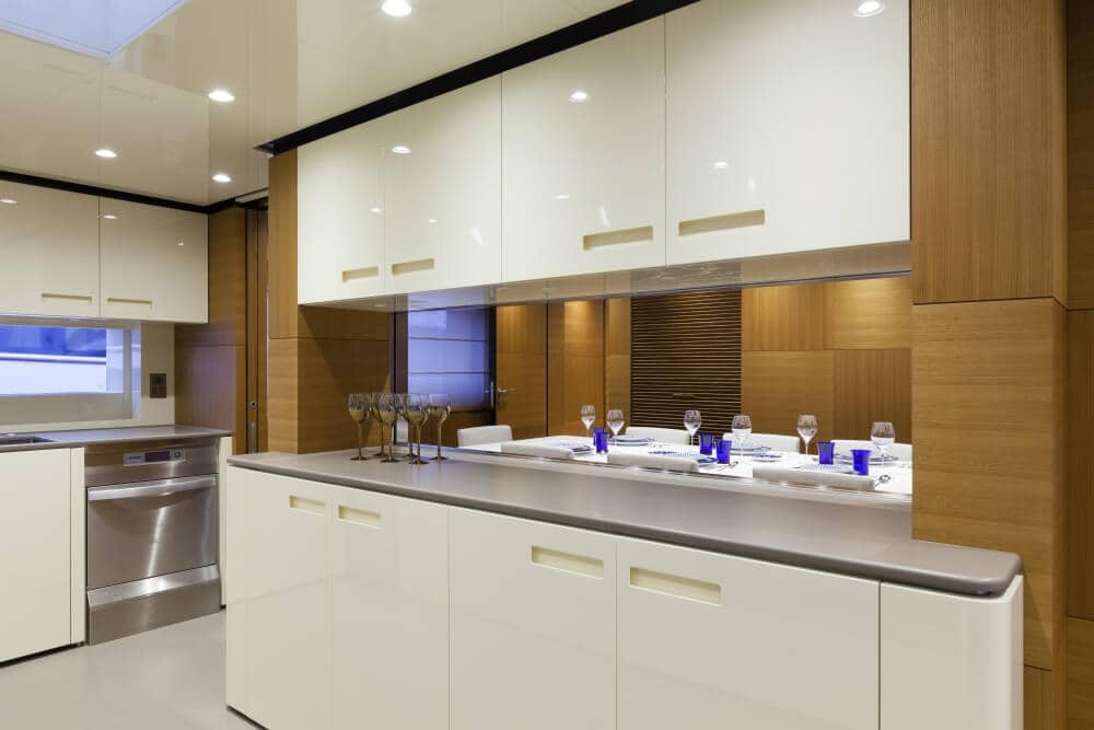Francesco Paszkovski created both the sharp exterior and the guest-friendly interiors, giving the yacht an overall stylish and sophisticated look. Every nook has been carefully designed to ensure maximum practicality as well as a sense of relaxation and fun. Pachamama is more like a comfortable home away from home than a classic explorer of the seas.