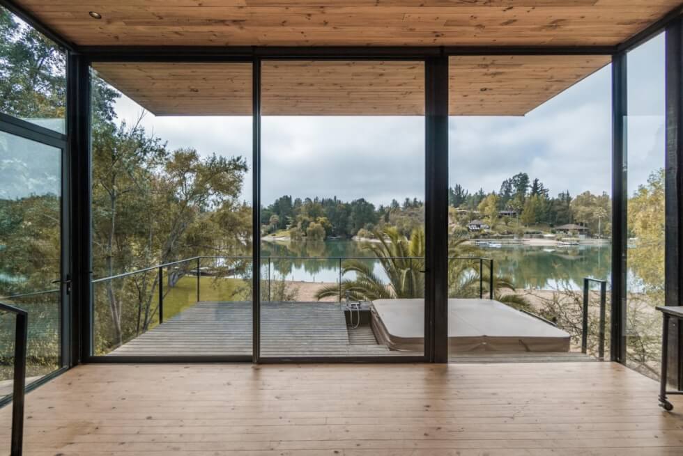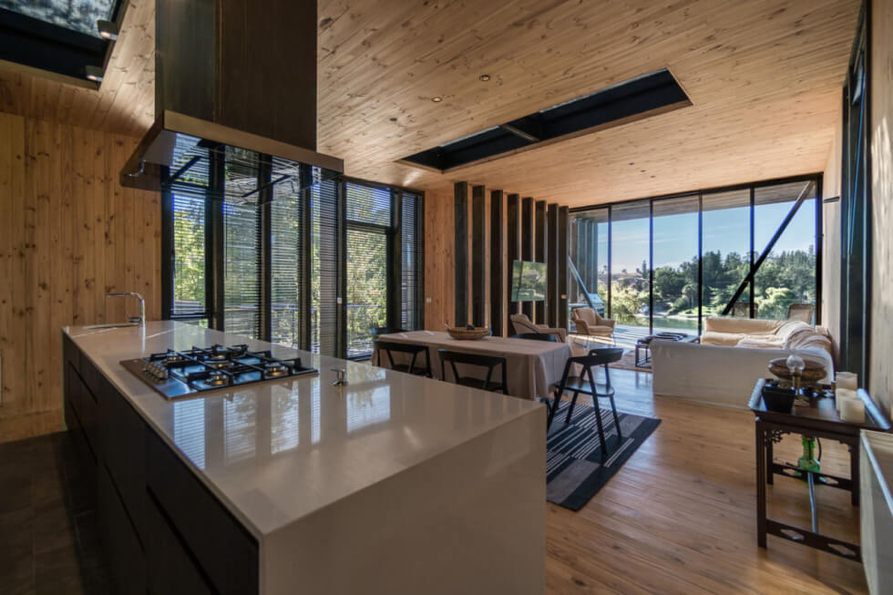 On the edge of Lake Rapel you’ll find an isolated Chilean reprieve, the off-grid Slope House. It’s an airy, open three-level abode with huge picture windows and an elementary structure of steel and concrete.