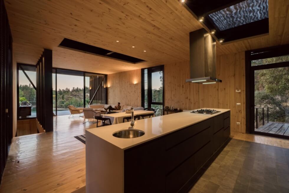 Wood and glass make up the “skin” of the home, a classy understated choice that doesn’t divert your attention from the surrounding environs. The name itself should be pretty self-explanatory once you see where the house rests — on a literal slope. As a result, this placement demanded small and precise terraced levels. The designers also sought to avoid large earthworks. Moreover, they wanted on three compact levels to decrease the occupation and erosion of the land. The result? A good, steady height with spectacular views.