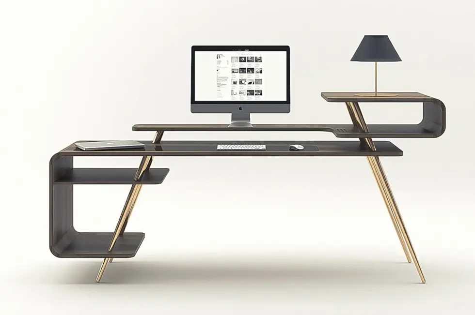 Sleek, stylish, and minimalist but fully functional. This singular office table features diagonal lines and multiple levels of storage that resemble cubby holes to minimize clutter. There’s a space to hold a laptop, mouse, keyboard, monitor, or your PC setup on the main tabletop. There are storage spaces on both left and right so you have the freedom to put what you want in them from books, magazines, CDs, documents, and more. The uppermost right corner is an ideal spot for a lamp.