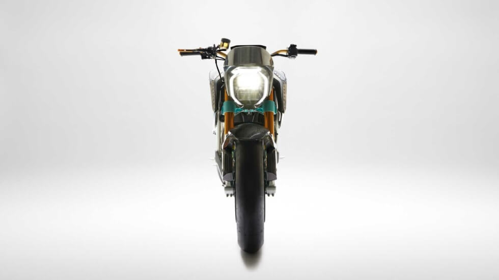 The Tinker Hatfield x See See custom electric motorcycle touts a white powder-coated trellis frame, teal rims, and golden handlebars. From a technical aspect, it retains the original motor, suspension, and brakes of the Zero SR/F. We hope the two will work on more stuff in the future.