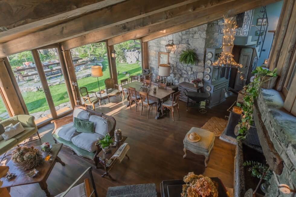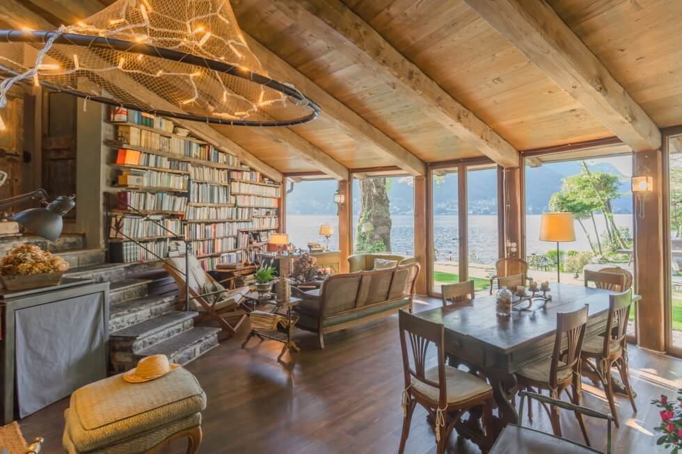 Meanwhile, inside has a couple of double rooms with private bathroom each and a single room that can sleep two children. It has wooden and glass veranda that offers views of the lake and the surrounding forest. There is also a wall of books stacked on shelving made from centuries-old chestnut wood boards that are set in stone.