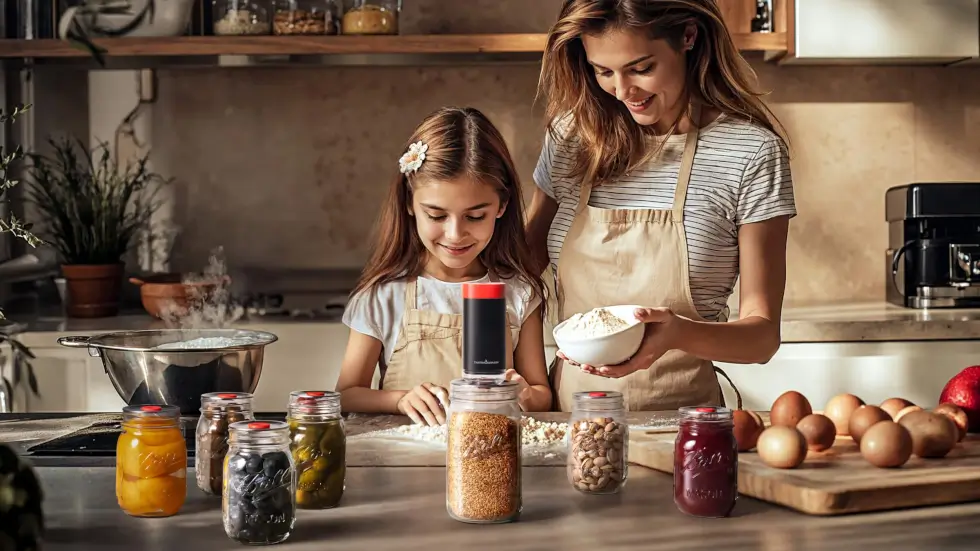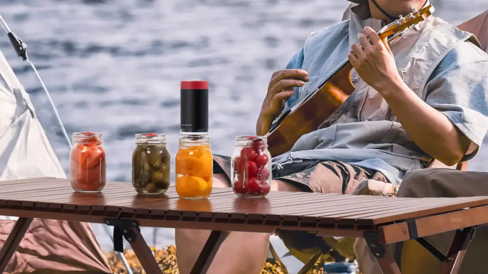 Moreover, the JV03 vacuum sealer not only works with Mason jars. It is also effective with bags, containers, and even wine bottles. It runs on a rechargeable 2000mAh battery that lasts for over 400 uses and comes with a 5V1A charging cable. Its design is 67% smaller than standard models for portability. This way, you can use it anytime and anywhere.