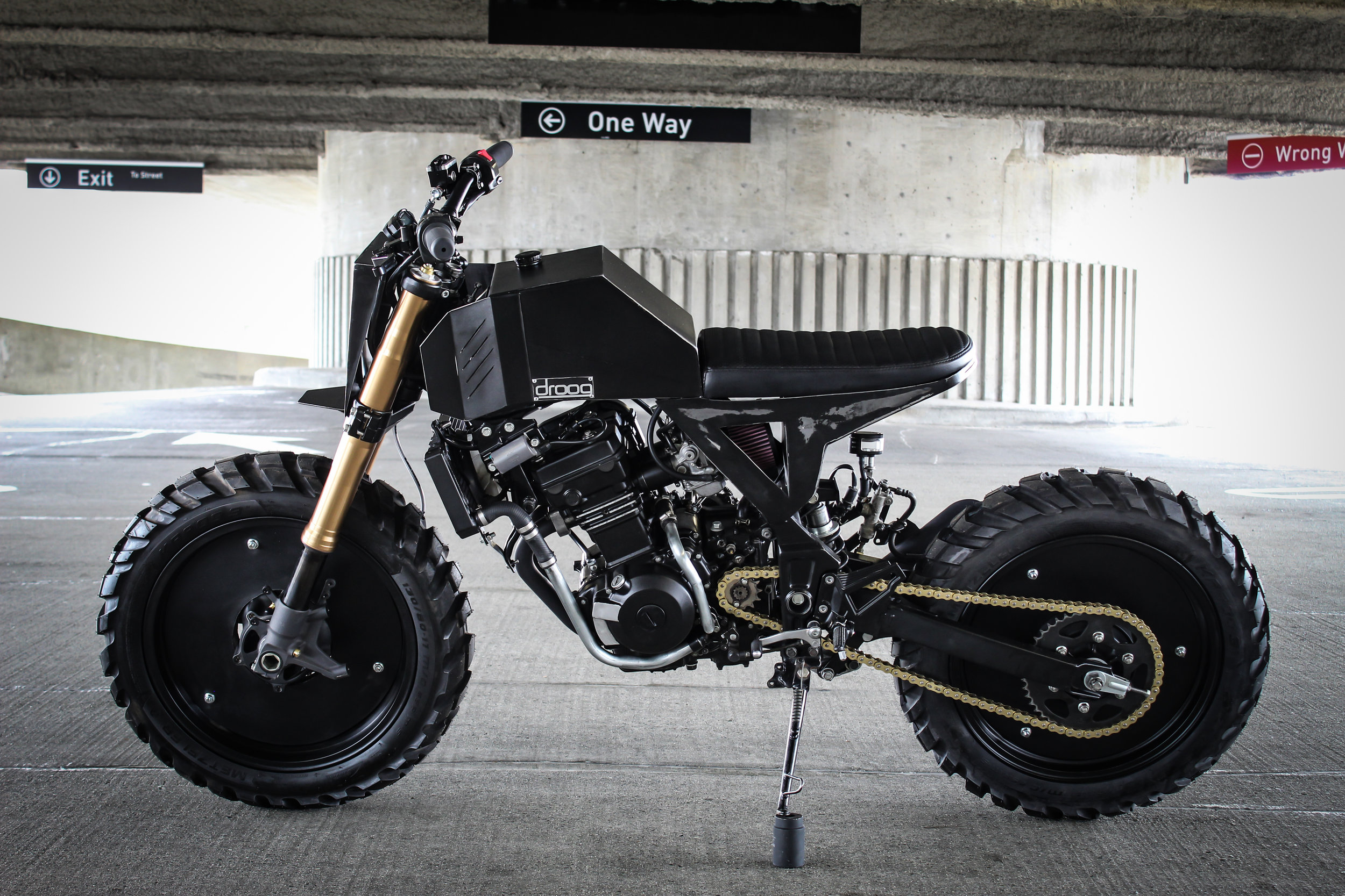 You get a front and rear suspension both fully upgrade to fully adjustable units. Also, you’ll find LED lighting that replaces the standard halogen bulbs on the bike. Each baby, in case you didn’t know, undergoes custom construction to satisfy the buyer’s standards. The shop takes your measurements and builds the bike to fit you personally. Thinking of those things is what really sets Droog Moto apart from the rest.