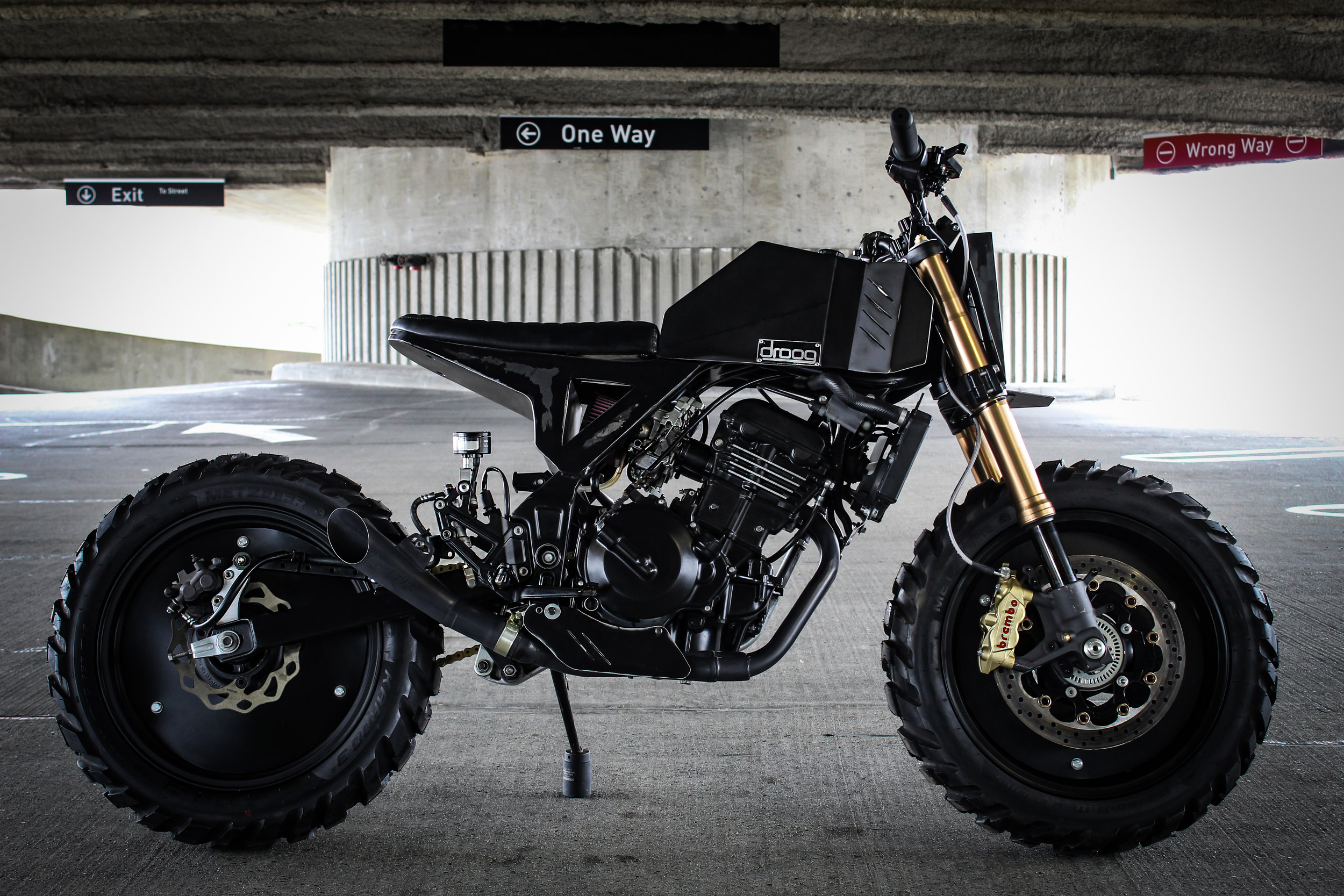 If you’ve seen Droog Moto’s previous handiwork, you know their motorcycles look like they came right out of a lavish science-fiction film shoot. The new one you see above is not an exception. The slick, slightly steampunk project sees the Kawasaki Nija 250 enter a drastic transformation to get ready for an imminent post-apocalyptic world.