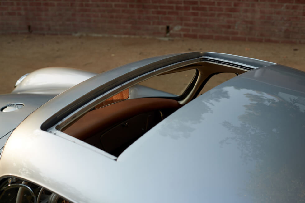 The exterior features a few minor modifications from the original, including a center fuel filler cap at the front. Inside, you’ll find brown leather with Roadster-style door panels and Spinnybeck woven seat inserts.