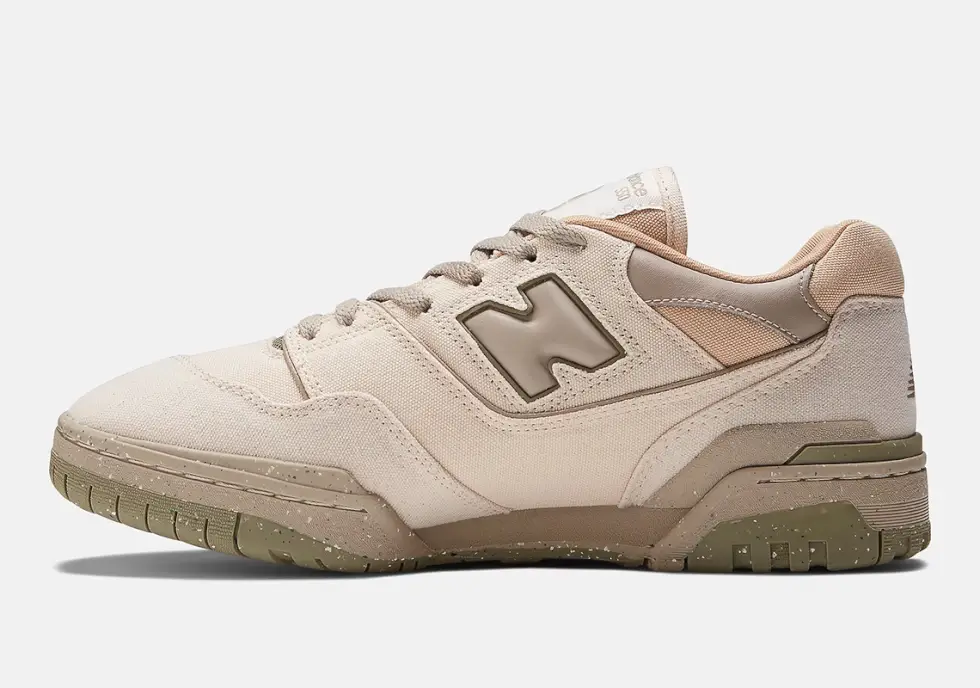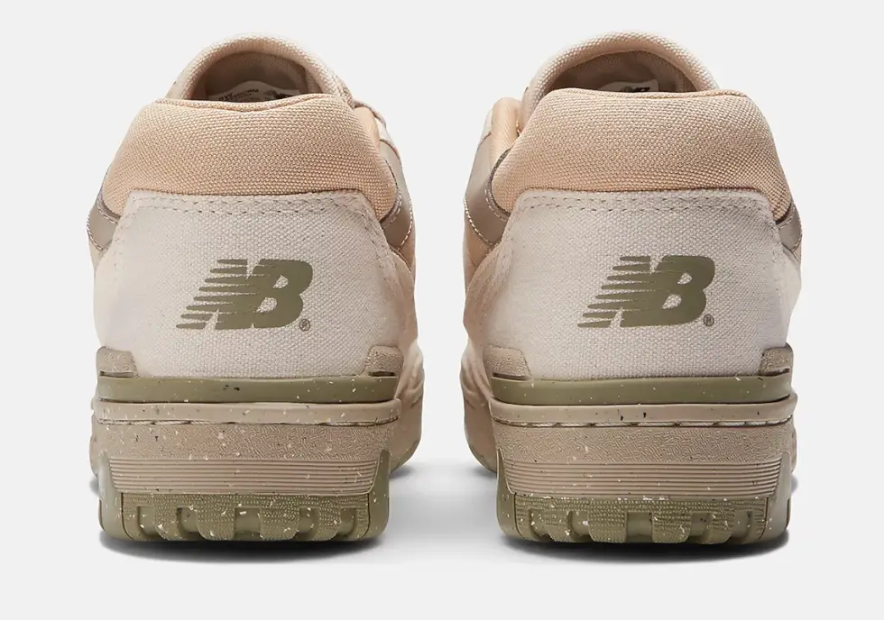 The tongue tags show the New Balance signature, emblem, and the 550 script in tonal colors against a white backdrop. Its “NB” on the heel is in olive and matches the tan midsole trims and outsole. The good news is that the 550 “Desert” will soon hit official distribution channels and the company’s website. A pair will carry a $110 price tag on launch day.