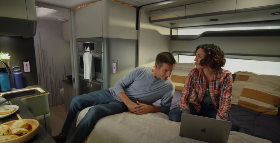 Plan out your weekend as you hit popular destinations and hang out with family and friends. A skylight provides adequate lighting by day. Go hands-free as Alexa lets you control almost everything in your mobile smart home. Electrochromic glass gives you high-tech privacy. If you want some fresh air, the THOR Vision Concept can even deploy a fold-out awning.