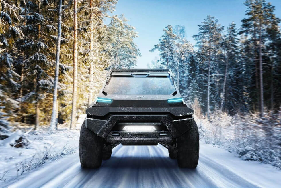 Visually, it resembles an SUV, but the manufacturer and its name tell us otherwise. Geometric shapes dominate the body to give it a futuristic aesthetic. Those who love options can get their Thundertruck in 4×4 and 6×6 configurations.