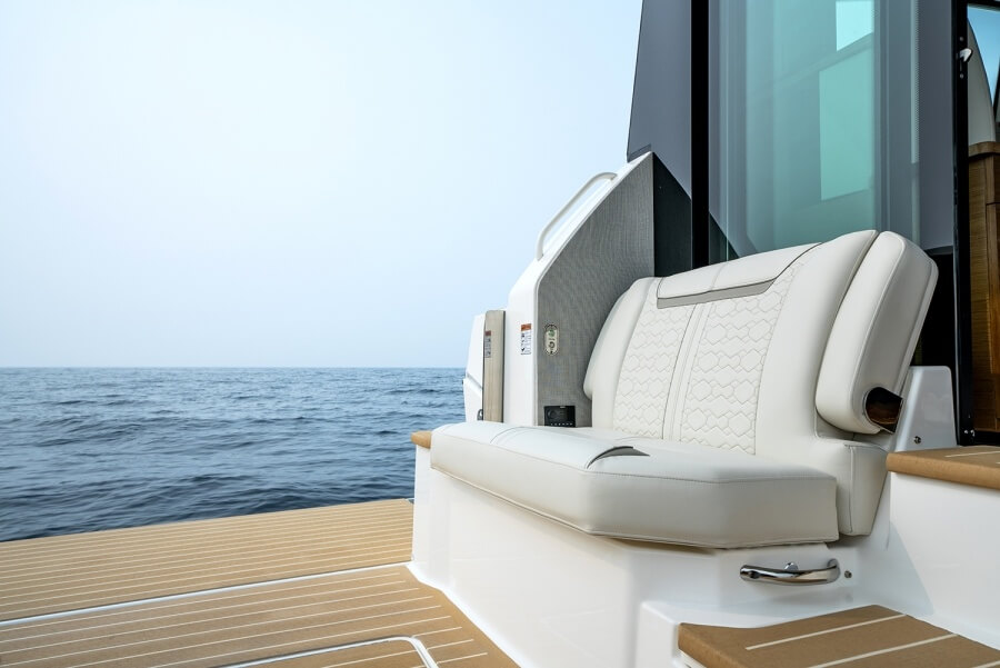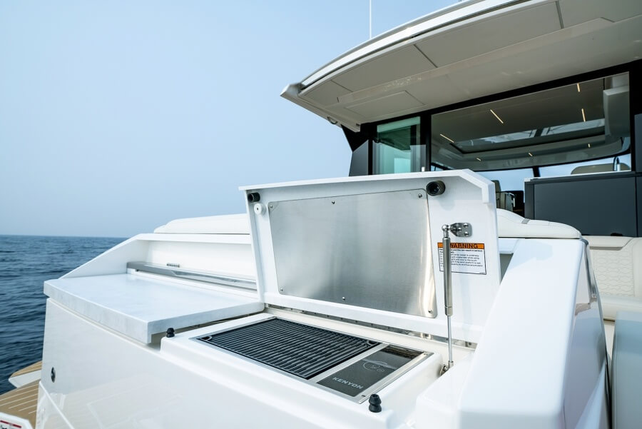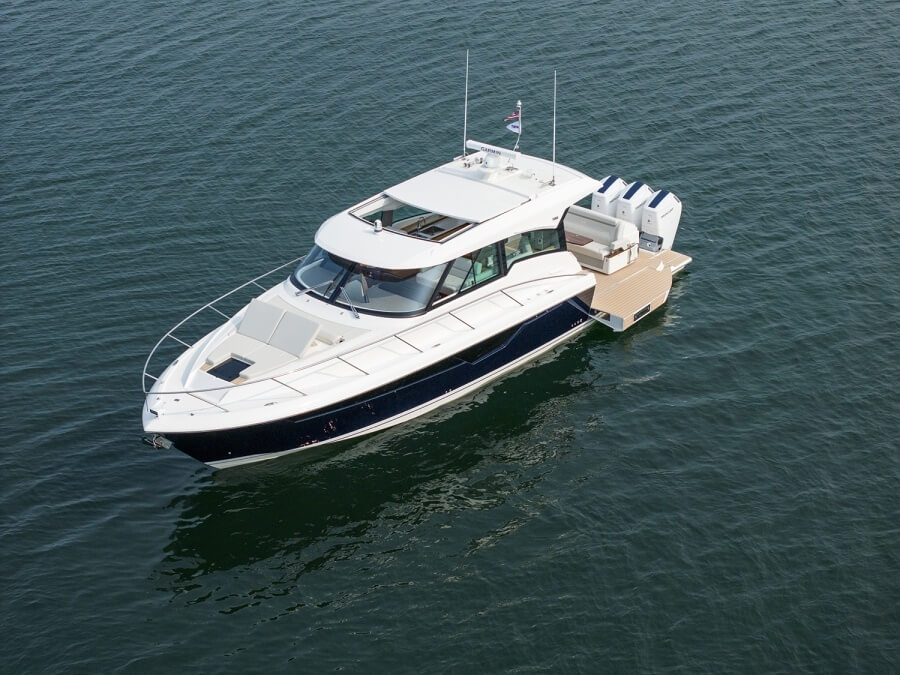 Furthermore, the spaces within feel open courtesy of the sunroof and wraparound glazing. Another cool feature of the 48 LE is the aft lounge module. The former is motorized and can spin 360 degrees and lock in any position. Next is the port-side fold-down terrace which doubles as a diving platform for swimmers. Tiara Yachts says extensive testing equates to exceptional durability.