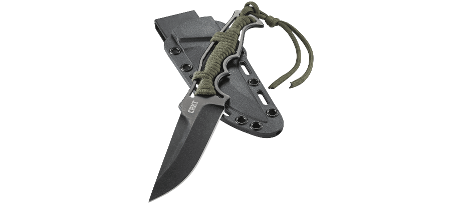 Its skeleton handle not only adds style, but it also keeps the Tighe Breaker lightweight. CRKT bundles a glass-filled Nylon sheath to keep the blade safely tucked away during transport. The 4.27-inch 8Cr13MoV steel blade features a black stonewash finish that gives it a stealthy look. Along with the handle the knife measures 8.69 inches and weighs around 3.5 ounces.