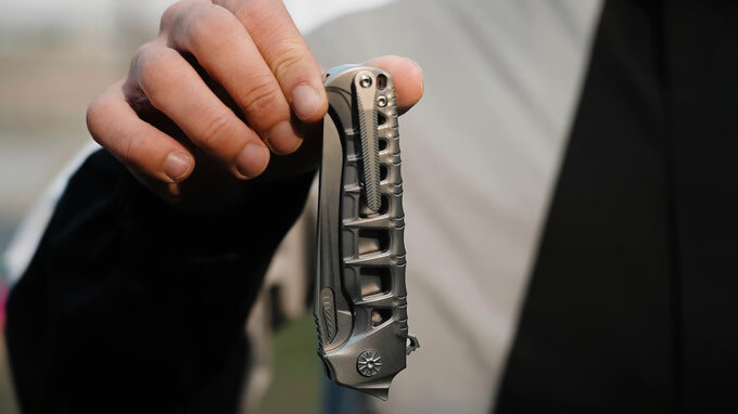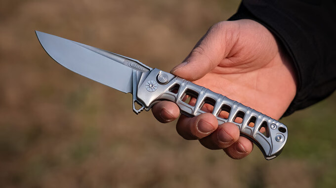 This is a titanium folding pocket knife that does great in both domestic and outdoor applications. Its lightweight yet robust titanium alloy handle complements its durable and sharp M390 high-performance blade. This is a knife that is more than just a tool but a masterpiece in its own right with its rugged appearance.