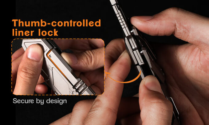 This EDC knife was born from the impulse to fidget, hence its deployment design. The blade doesn’t spring out on its own. Instead, it needs intentional pressure to move it out along the rails. It doesn’t budge but stays securely in place even if you shake the knife. This way, you can carry it with confidence and peace of mind knowing it’s safe.