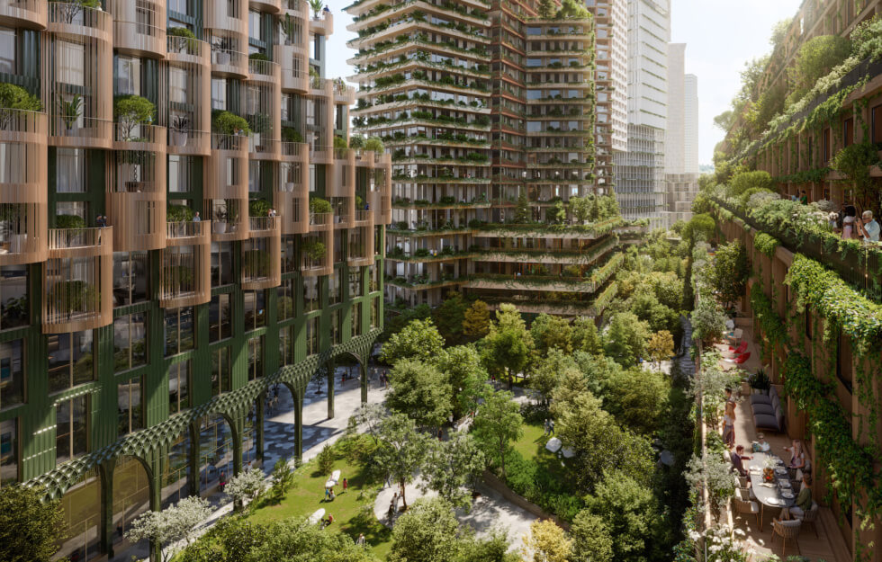 Adjaye Associates’ Timber House makes up part of the planned structures at Toronto’s Quayside. It also includes the Alison Brook Architects’ designed Western Curve, a tower that rises up from slender arches. Then beside it is The Overstorey tower from Dutch studio Henning Larsen.