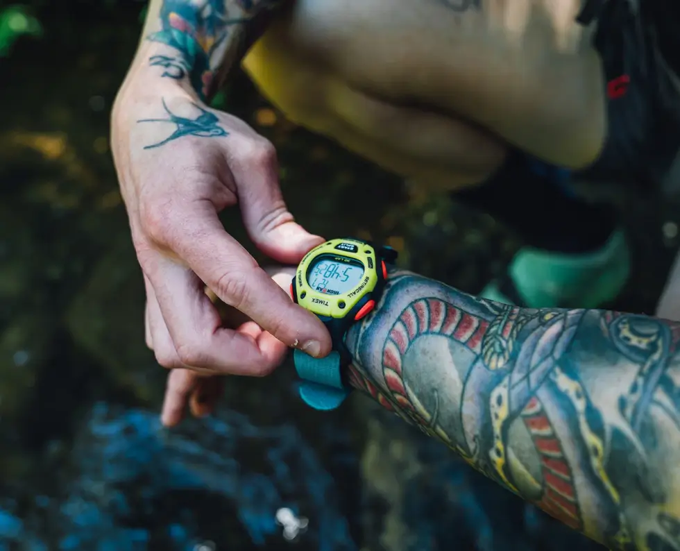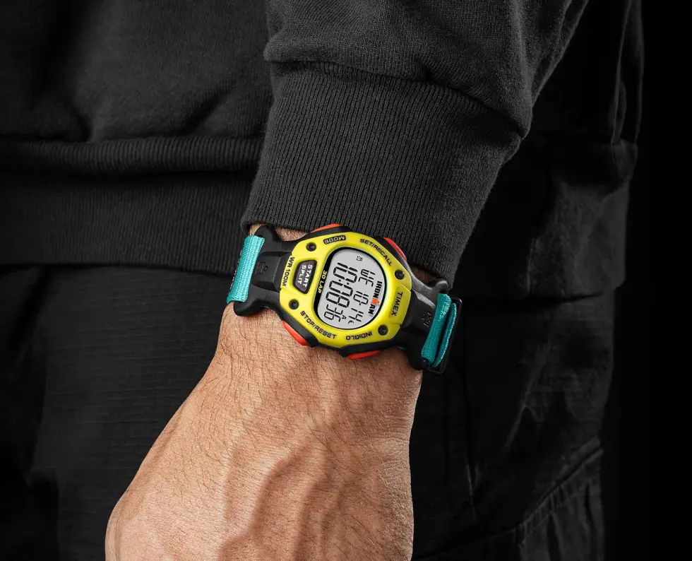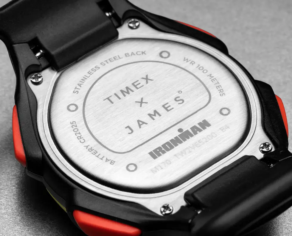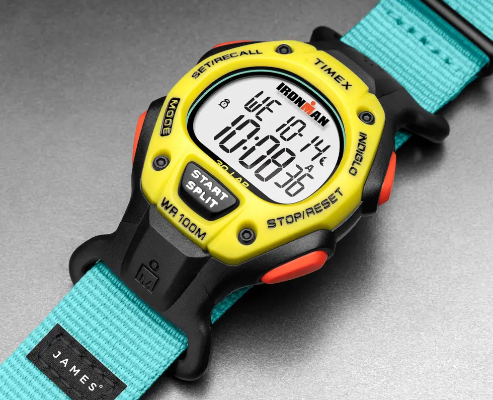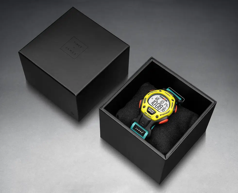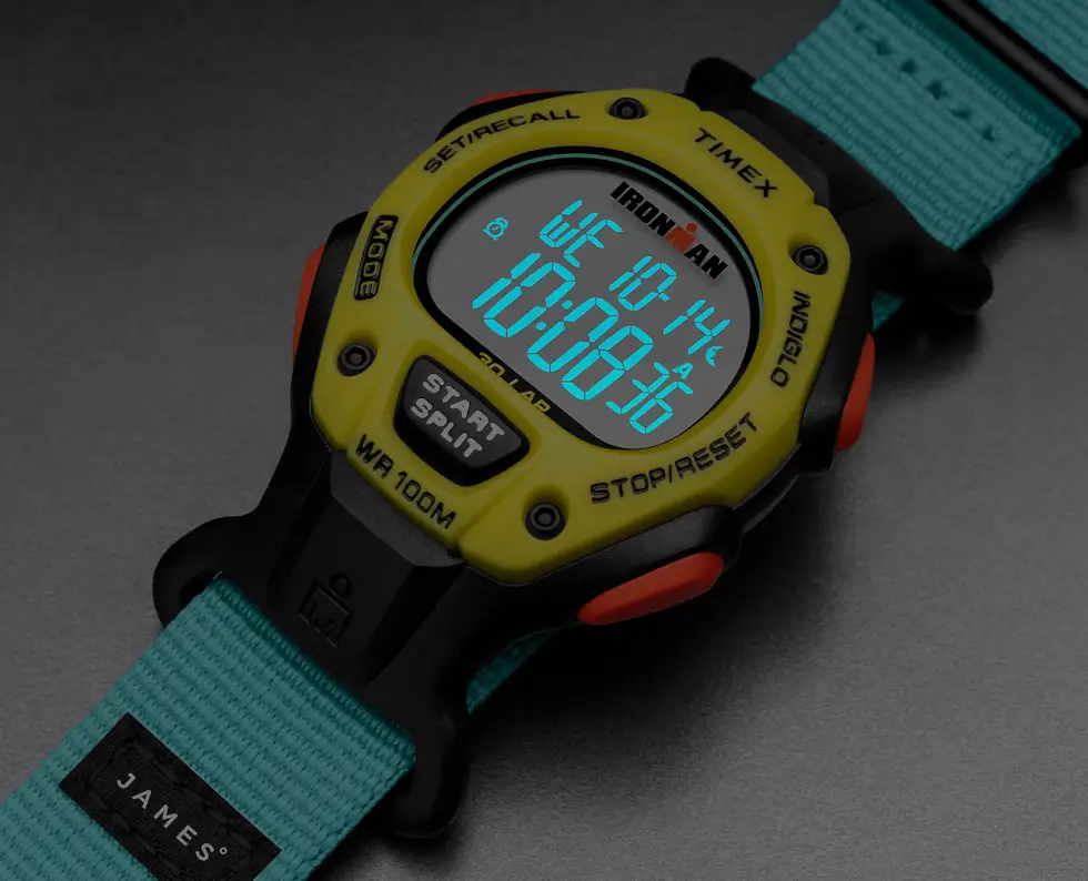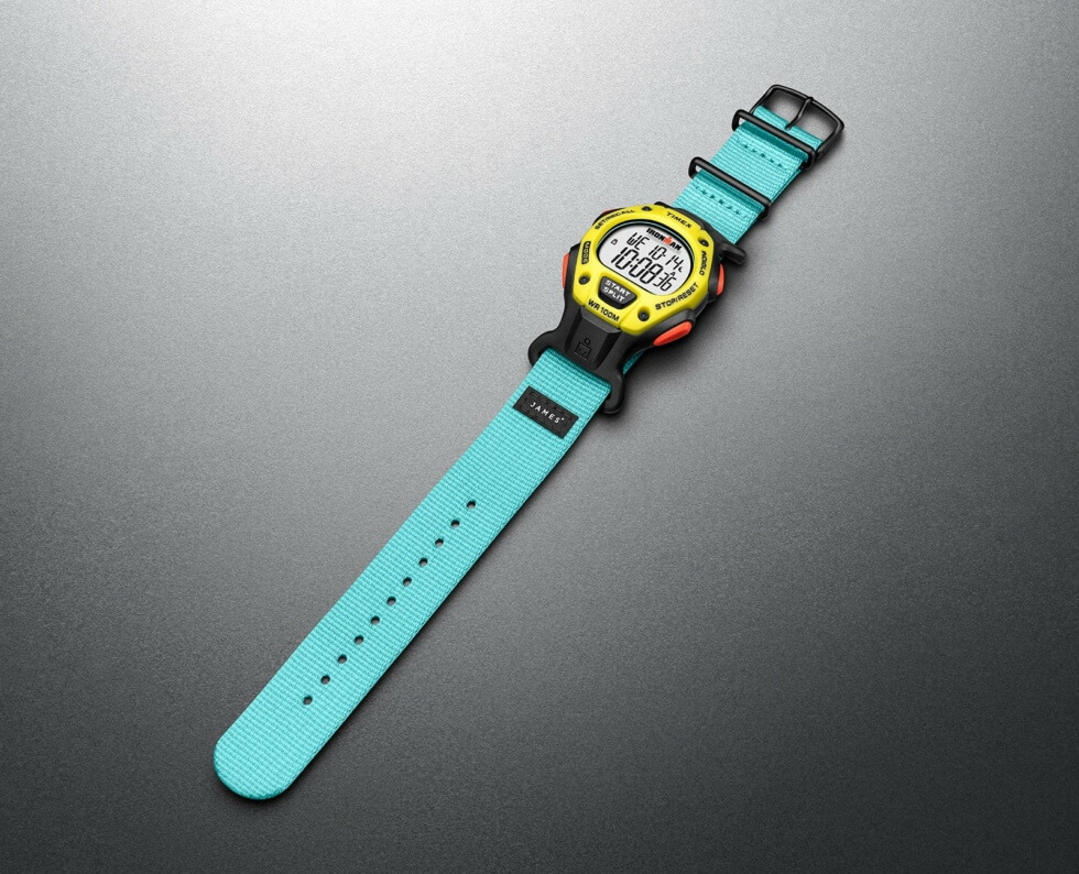 Its case back is crafted out of stainless steel, while the included band is made out of upcycled ocean plastic. It’s a minor yet significant detail that some consumers might want to keep in mind. The James Brand Edition of the Timex Ironman is mostly presented in black, but the crimson buttons, neon yellow fixed bezel, and turquoise strap endows with a vibrant profile.
