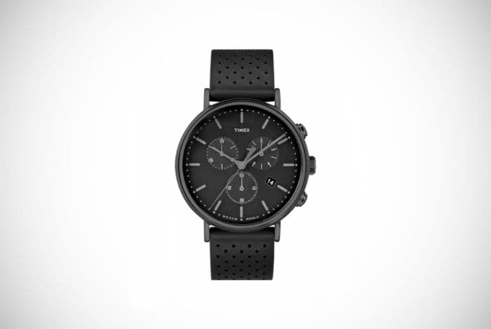 What’s left is a timepiece which offers everything you’d expect from a chronograph in a mid-sized face which isn’t too overbearing. Water-resistant to 30 meters, the all-black design is fitted with the popular Indiglo feature for use in low light. With a perforated leather strap, it’s comfortable on the wrist and we think this is a nifty little number to end on.