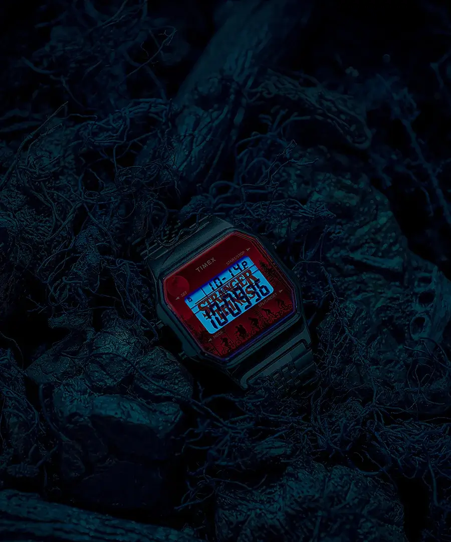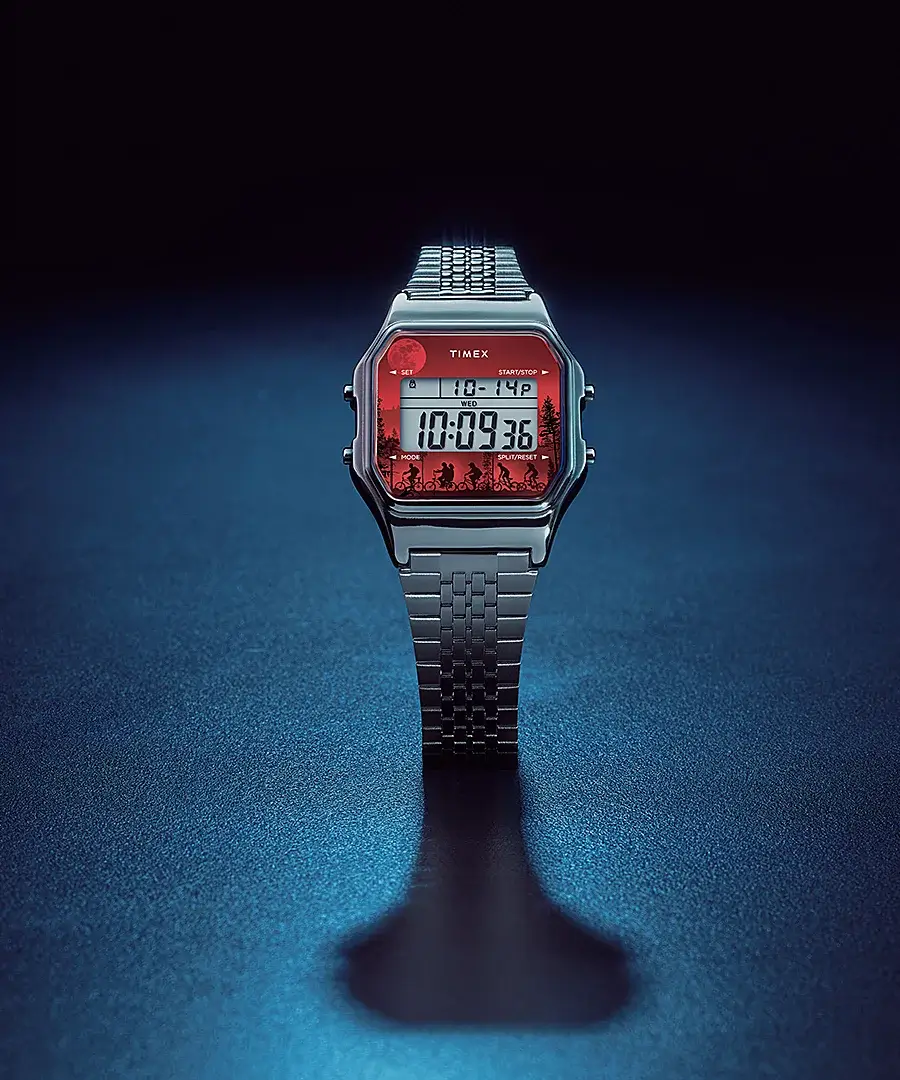 Until that happens, you can order any of or all three watch models from Timex. To start off, we have the digital quartz variants: Timex Atlantis x Stranger Things and Timex T80 Stranger things. Aside from sizes, each accessory touts distinct features fans will love.