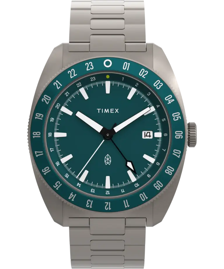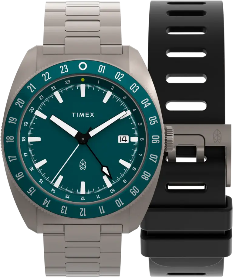 TJB is a favorite among outdoor enthusiasts, which is why this dual time zone model touts remarkable durability. Instead of stainless steel, Timex renders the 41 mm x 11.5 mm tortuga case out of titanium. For a cohesive look alongside reliable toughness, the uni-directional rotating bezel, exhibition case back, and bracelet are also fashioned out of the same metal.